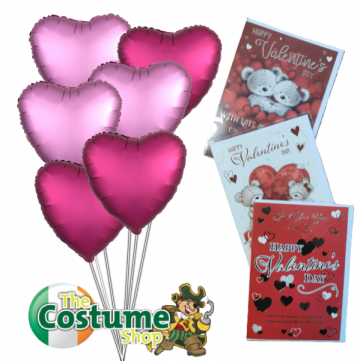 Show you care with our beautiful Valentines Day Bundle, includes 6 inflated Satin 18" Heart balloons, weighted, with attached curling ribbon and a FREE Valentines Card.