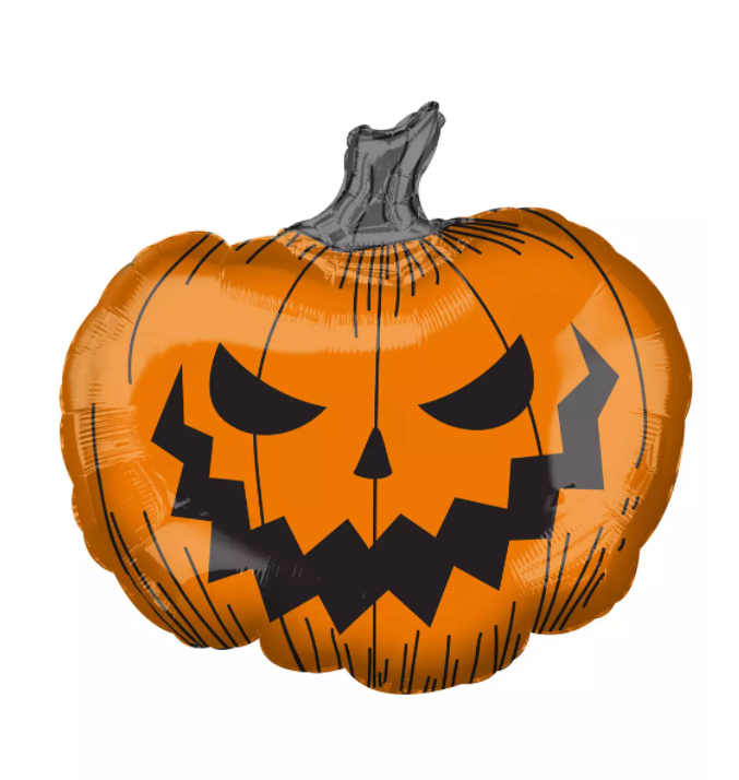 Our 29" Hallows' Eve Pumpkin Foil Balloon is the perfect decoration for your house this Halloween.