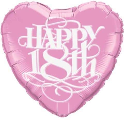 Happy 18th Birthday Balloon - Heart Shape, this foil balloon is pink in colour and is 31" / 79cm in width.