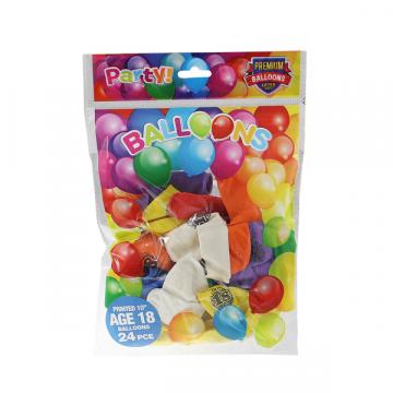 24 Pack of Happy 18th Birthday Balloons. Balloons measure 10"