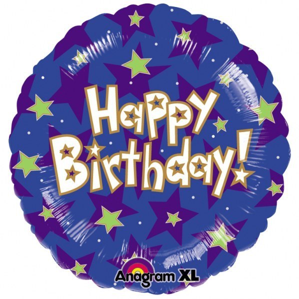 17"(23cm) Happy Birthday Stars Balloon. Suitable for use with helium.