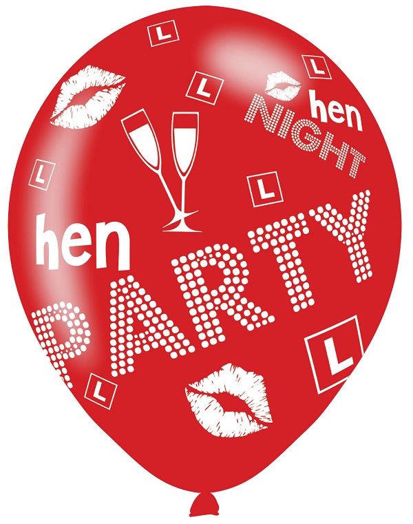 Pack of 6 11"(27.5cm) Hen Party Latex Balloons. Pack includes 3 pink and 3 red balloons.
