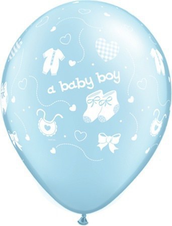 11" Round Pearl Light Blue Baby Boy Latex Balloons - 100 Pack. These balloons are suitable for use with helium.