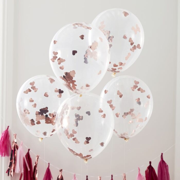 Fill your room with love this Valentine's day with our gorgeous rose gold heart-shaped confetti balloons.