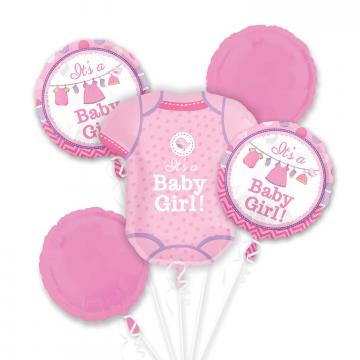 5 Balloon Shower with Love Girl Foil Bouquets. Arrives inflated with ribbon and balloon weight.