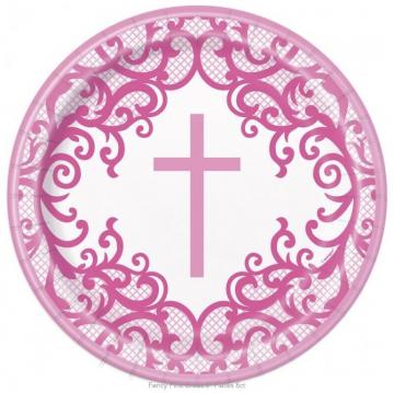 Pack of 8, Pink Fancy CrossPaper Plates
