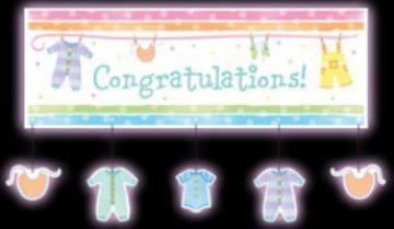 Baby Shower Congratulations giant party banner with 5 cutout attachments.