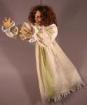 The possessed girl wears a long gown, a disturbing face and has poseable arms and wild red hair.