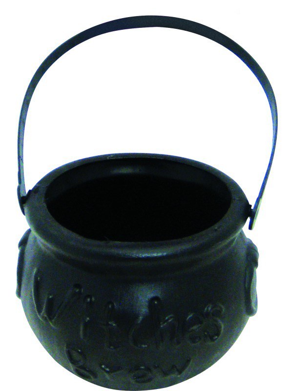 Small black Witch's 6" cauldron with "Witches Brew" text on the front.