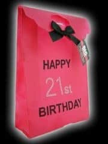 Pink Happy 21st Birthday Gift Bag with diamanté and black bow.