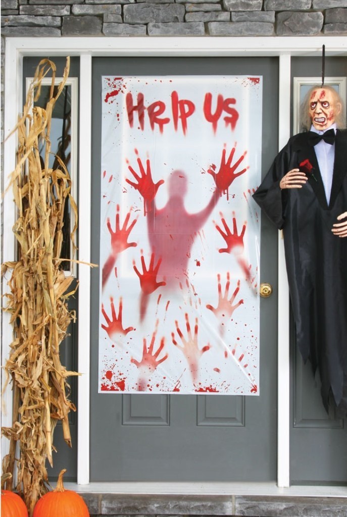 60" x 30" Indoor/Outdoor "Help Us" Horror Door Cover.