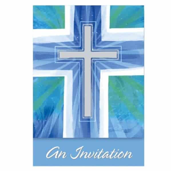 Joyous Cross Blue Folded Invitations, pack of 8.