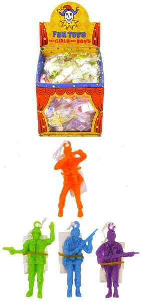 Parachutist Toy Soldiers - Pack Of 4. Pack contains 4 assorted coloured soldiers, each 65mm in size.