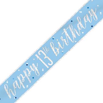 13th Birthday Glitz Blue & Silver Foil Banner - 9ft