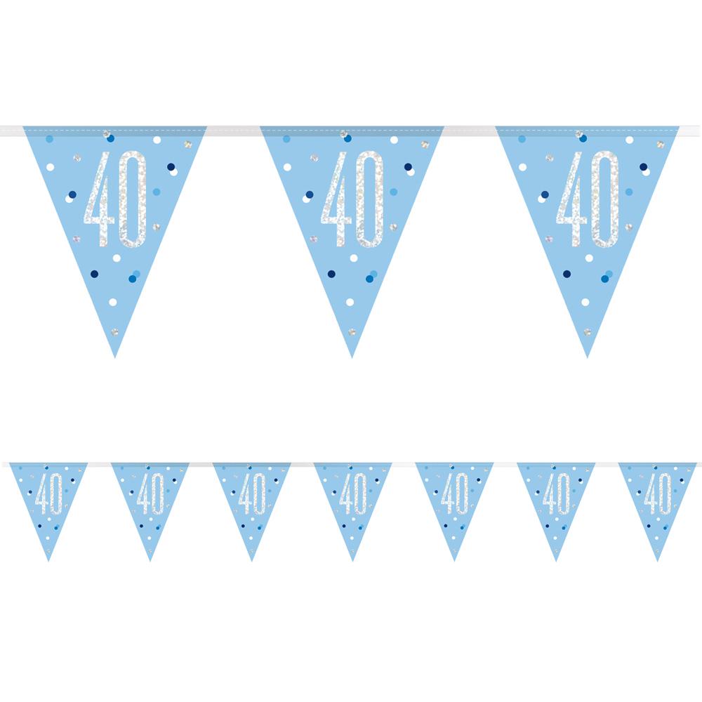 Whether it's a small or big party you've got planned for celebrating a special milestone birthday, this bunting is 2.7m long so has plenty to go around. Perfect to hang along a wall or ceiling, it is a must have 40th birthday decoration to finish off a party with a blue colour scheme. Ideal to team with our Birthday Glitz tableware. Don't forget to add some co-ordinating decorations to complete the look!