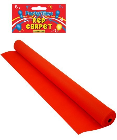 Arrived very next door. Really happy cheap but cheerful. Long enough sticky bits along the edge .its paper.colour is red .stayed down.only tore when drink was dropped on it .can't complain did its purpose for my garden for a debs.