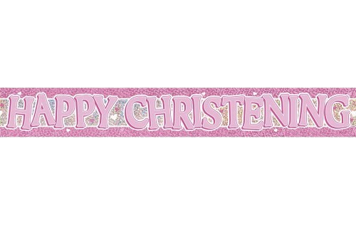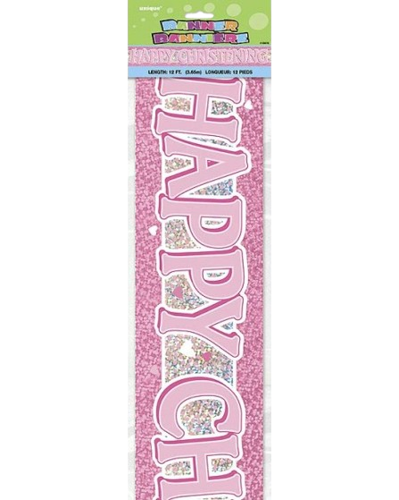 Pink Christening Prismatic Banner – A stunning 12-foot decoration, perfect for adding a touch of elegance and sparkle to any christening celebration.