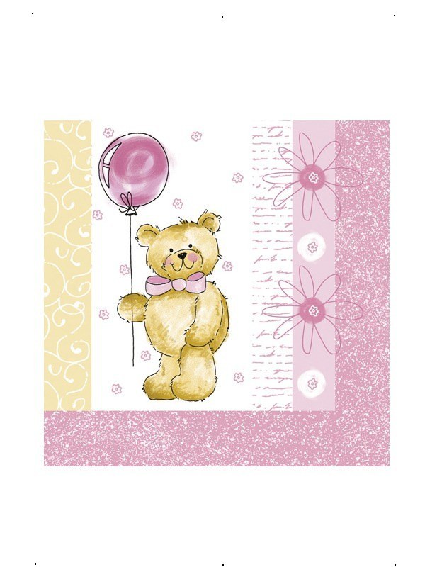 Pretty pink Teddy Bear Napkins are perfect for a little girls special day. Napkins measure 33X33CM and come in a pack of 12.