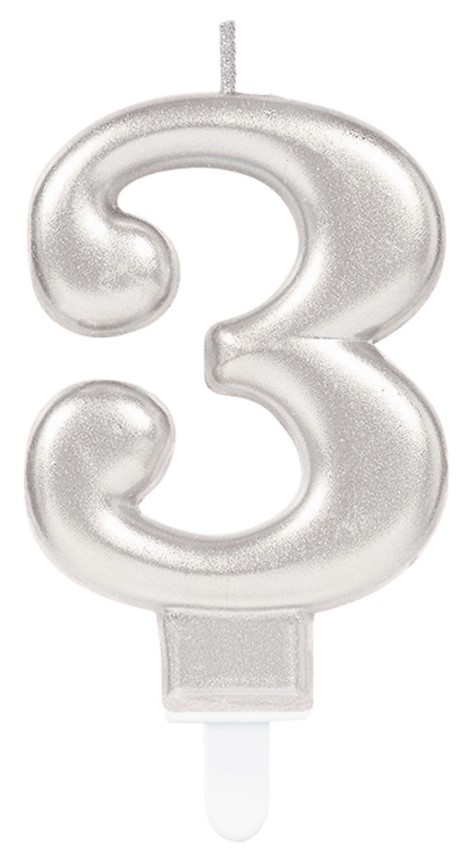 Silver Metallic Finish Number Candle #3