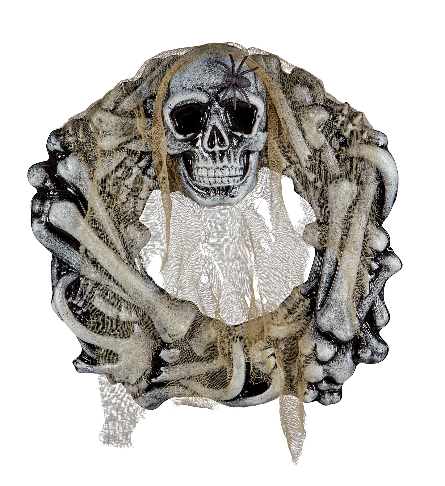 Skull and Bones Wreath with Spider and Spooky Gauze. 50cm