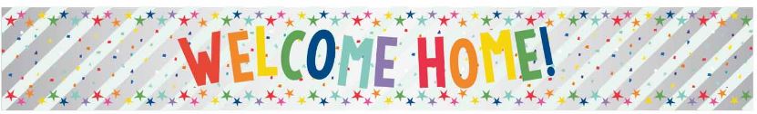 Celebrate a special return with this 2.7m "Welcome Home" foil banner. Featuring bold lettering and a shiny finish, it's perfect for welcoming loved ones back in style. Ideal for indoor or outdoor use!