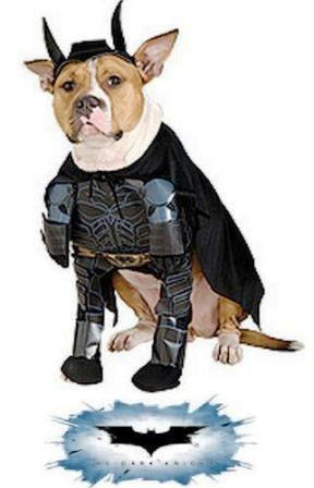 Pet Batman Costume consists of a black jumpsuit with bat suit print and attached foam arms. Ties around the neck.