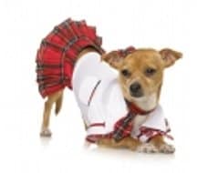 Completing the scholarly look is a tartan pleated skirt, exuding an air of academia. To add a touch of formal flair, a matching tie and clip-on bow are included, allowing your pup to show off their dapper side.