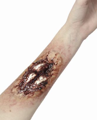 Please note that spirit gum and blood gel are required to complete look pictured .