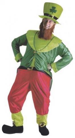 Irish Leprechaun Costume includes a one piece leprechaun suit with attached boot covers and a matching jacket. Costume also includes a hat.