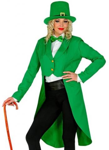 Celebrate St. Patricks Day in Style with this green tailcoat jacket for ladies. It features an emerald green tailcoat with gold buttons across the front. Just add one of our green top hats and bow tie to complete the look.