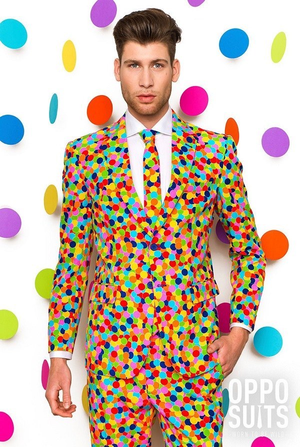 The Confetteroni OppoSuit includes a tartan suit jacket with matching jacket and tie.