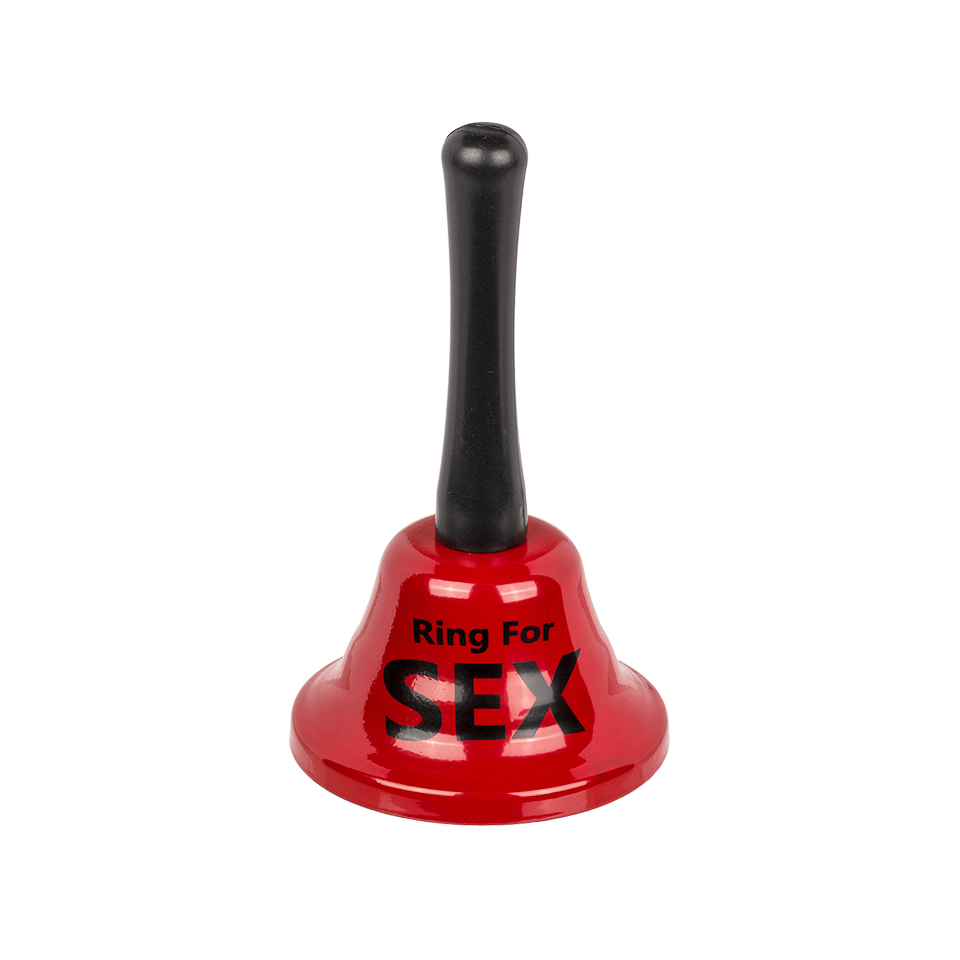 "Ring For Sex" Bell, red bell with "Ring For Sex" print in black and a black handle. Bell measures 5" tall.