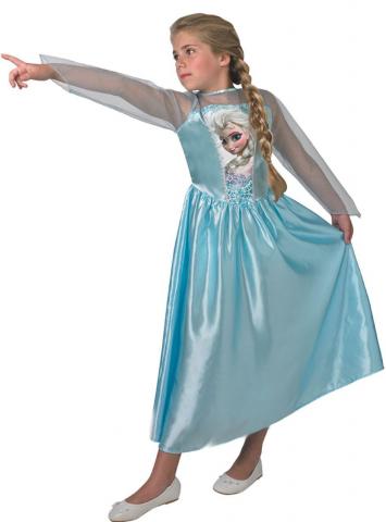 From the hit Disney movie Frozen comes our Classic Elsa Costume. Included in this costume is a long turquoise dress with mesh sleeves and a printed Elsa picture.