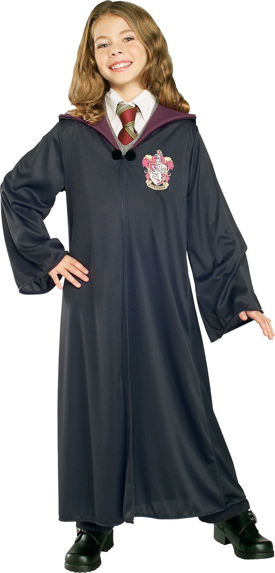 This Harry Potter Gryffindor black hooded robe comes with clasp and logo. Just like Hermione's character. Imagine the Sorting Hat has decided to chose you to join your friends at Gryffindor House. What wonderful tricks will you play on the Muggles you meet?