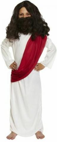 This Kids Joseph costume includes a long white long sleeved robe with an attached sash. Ideal for nativity or school plays. Please note wig and beard are not included.