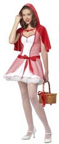 Teen Little Red Riding Hood costume consists of a red and white checkered dress with a sweetheart neckline line and ribbon bow belt. To complete the fairytale look a red capelet is also included.