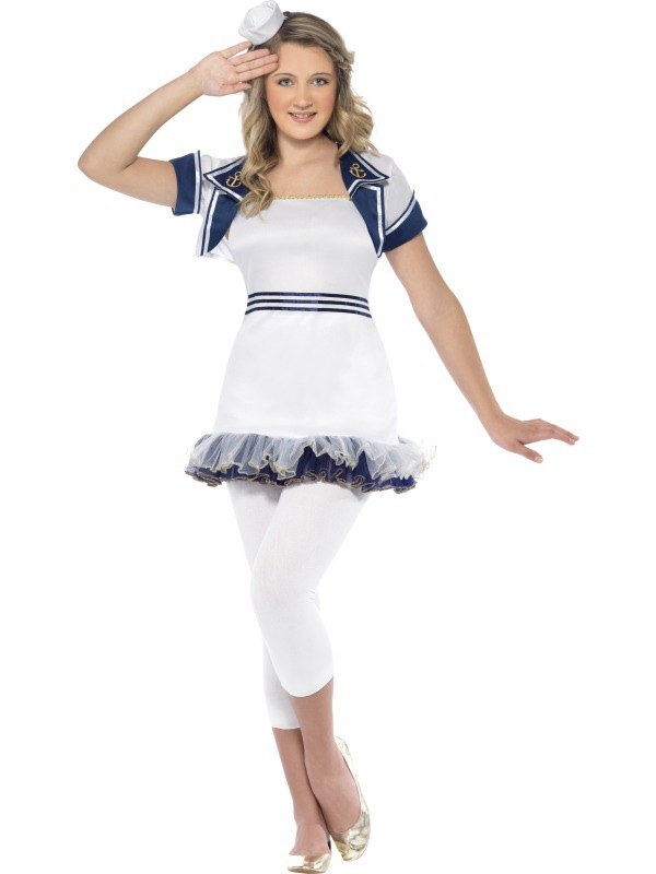 This cute Teen Miss Sailor Costume includes a white and blue tutu style dress with short sleeved bolero with anchor print. To complete this sweet look a mini sailor hat is also included.