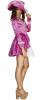 Pirate's Treasure Teen Costume includes a very short white lace dress with attached cerise pink velour jacket and a matching pirate hat with a white lace trim.