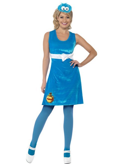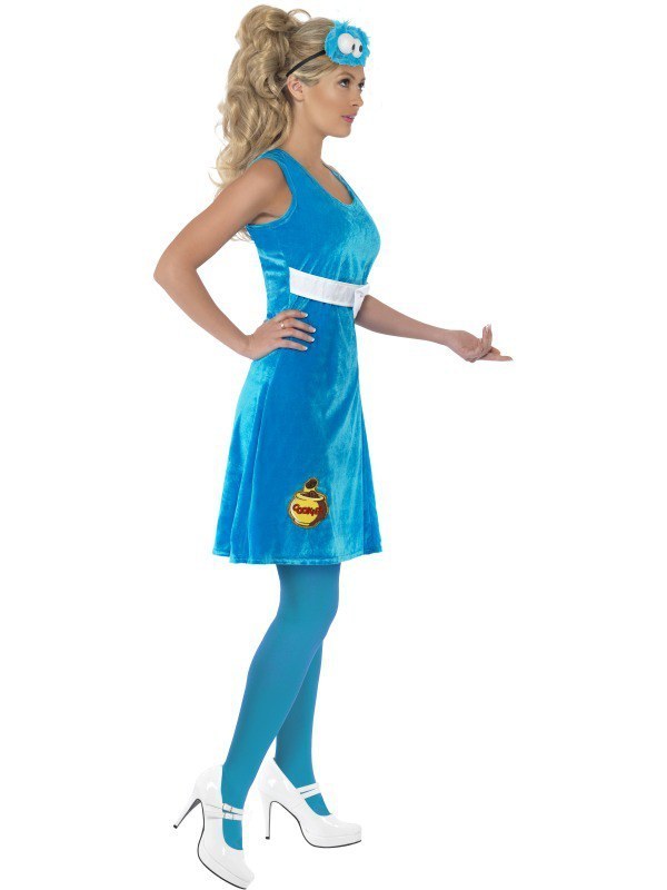 From the famous tv programme "Sesame Street", the Teens Cookie Monster Costume features a cute blue sleevelss faux velour dress with cookie and bow detail on the front. To complete the look a Cookie Monster headpiece is also included.