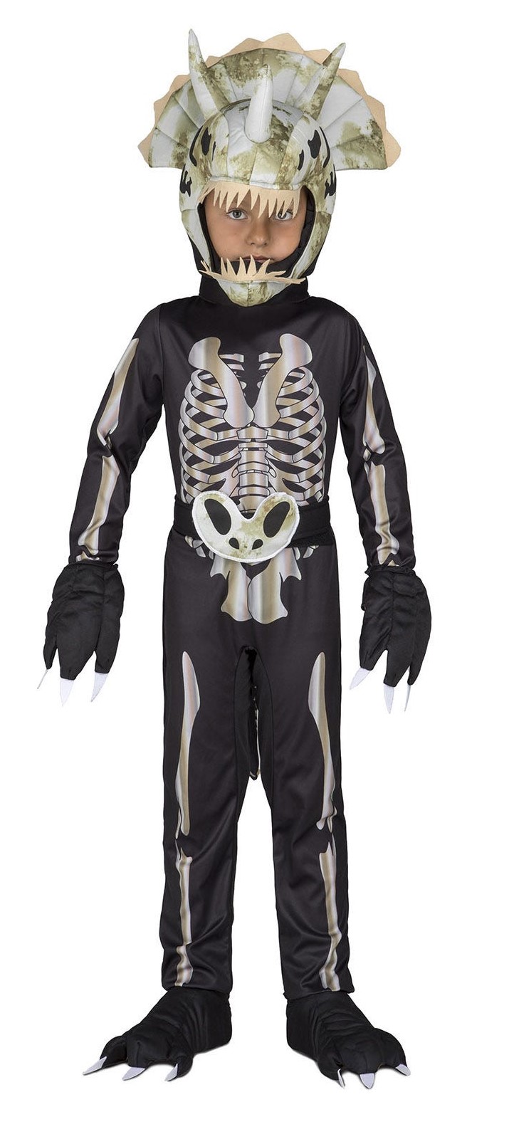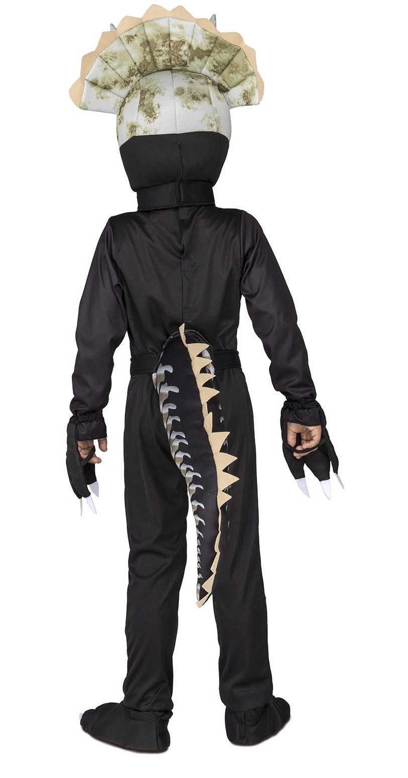 This Tweens Fossil Dinosaur Costume includes a printed jumpsuit, gloves and a head piece. To complete the look a tail and boot covers are also included.