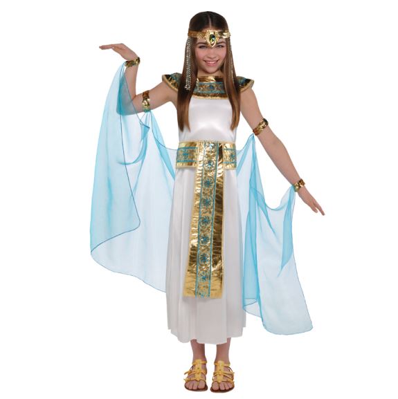 Featuring an elegant dress, a shimmering belt, and a regal collar, this outfit captures the iconic look of ancient Egyptian royalty. Complete with a matching headpiece, it’s perfect for costume parties, themed events, or Halloween, allowing your child to channel their inner Cleopatra in style.