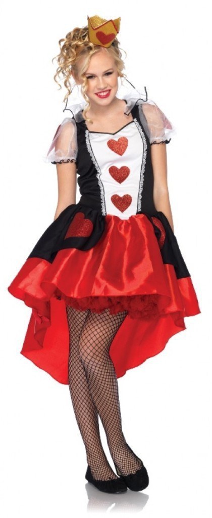 Teen Wonderland Queen costume includes a dress with a removable back bow and a crown headpiece.