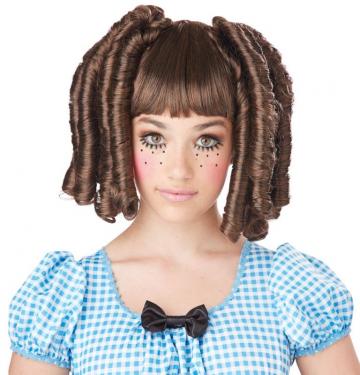Brown Baby Doll with with curls and fringe. The wig also features an attached wig cap to hold the wig securely onto your head.