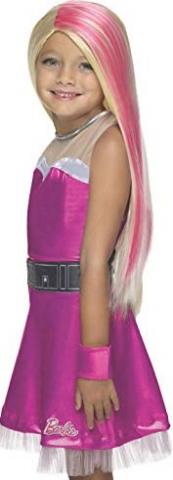 Complete any Barbie costume look with this fabulous Barbie Sparkle Wig. It features a long shimmery pink strand accent blond wig.