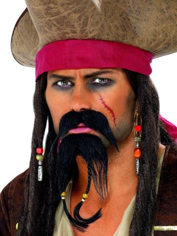 Pirate Brown Facial Hair Set includes moustache and beard with beads