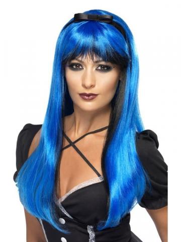 The Bewitching Wig Blue wig is a long Electric Blue over Black wig with a heavy fringe