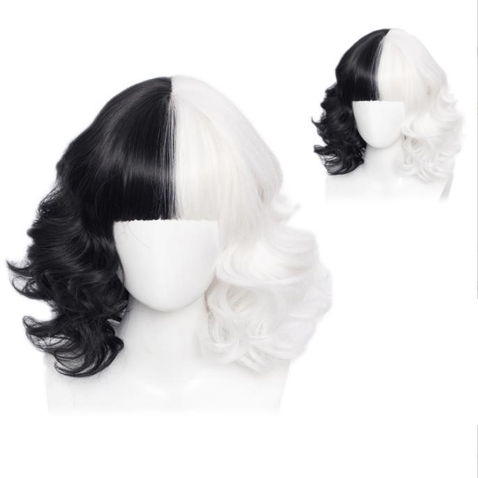 Complete you Halloween fancy dress look with our Ladies Black And White Wig With Fringe.