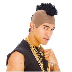 Black Fro Hawk Wig is a rubber headpiece which is bald on both sides. It features a thick line of afro hair from front to back giving the appearance of a full mohawk.