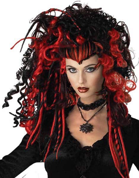 Black Widow Wig,red and black wig with fringe,curls and dreadlocks.