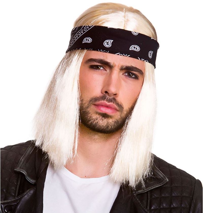 Blonde 90's Rocker Unisex Wig with attached wig cap to hold the wig securely onto your head and to stop any stray hairs that might give away the look.